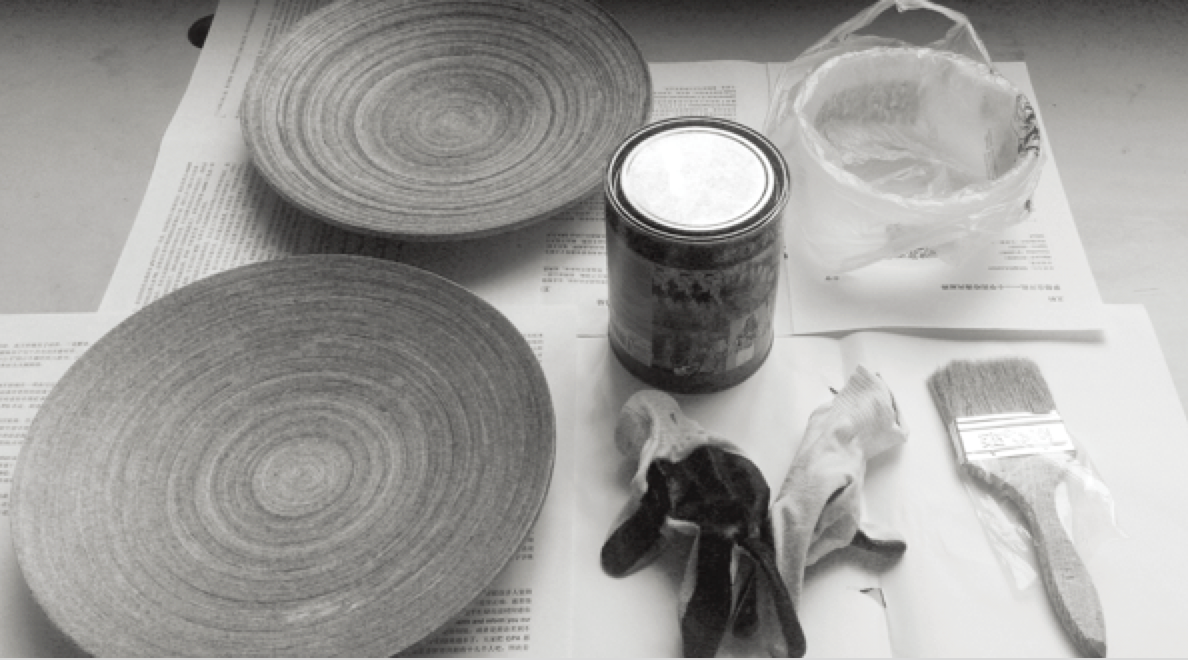 Bamboo plates, Lime, Glue, Paint