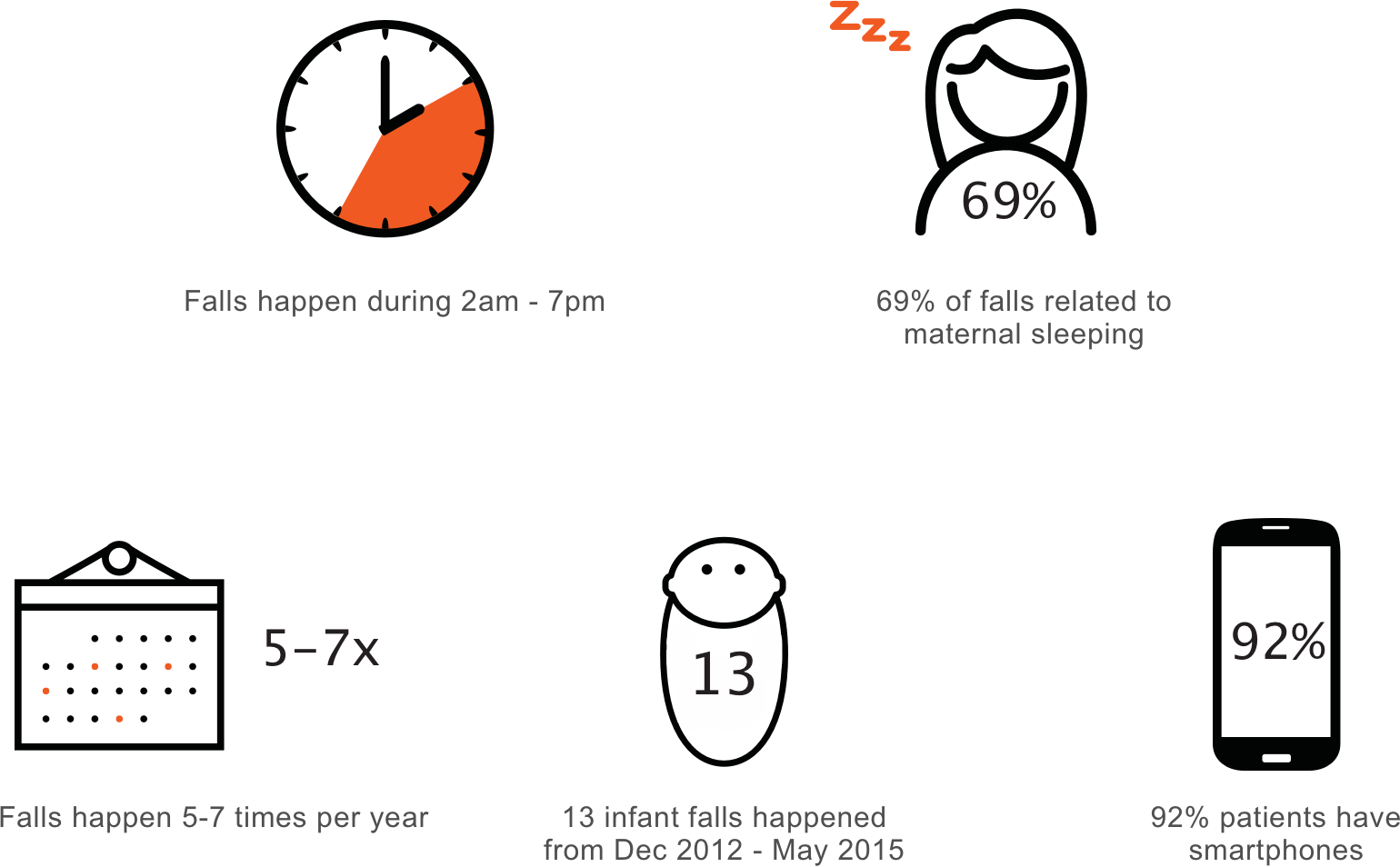 After analyzing our findings, we determined that we could reduce the occurrence of newborn falls by helping mothers transfer their babies more easily from the crib. To achieve this, we re-designed the bassinet to minimize the effort required by mothers to move their babies, allowing them to become more self-sufficient and decreasing the likelihood that they would fall asleep while holding their babies.