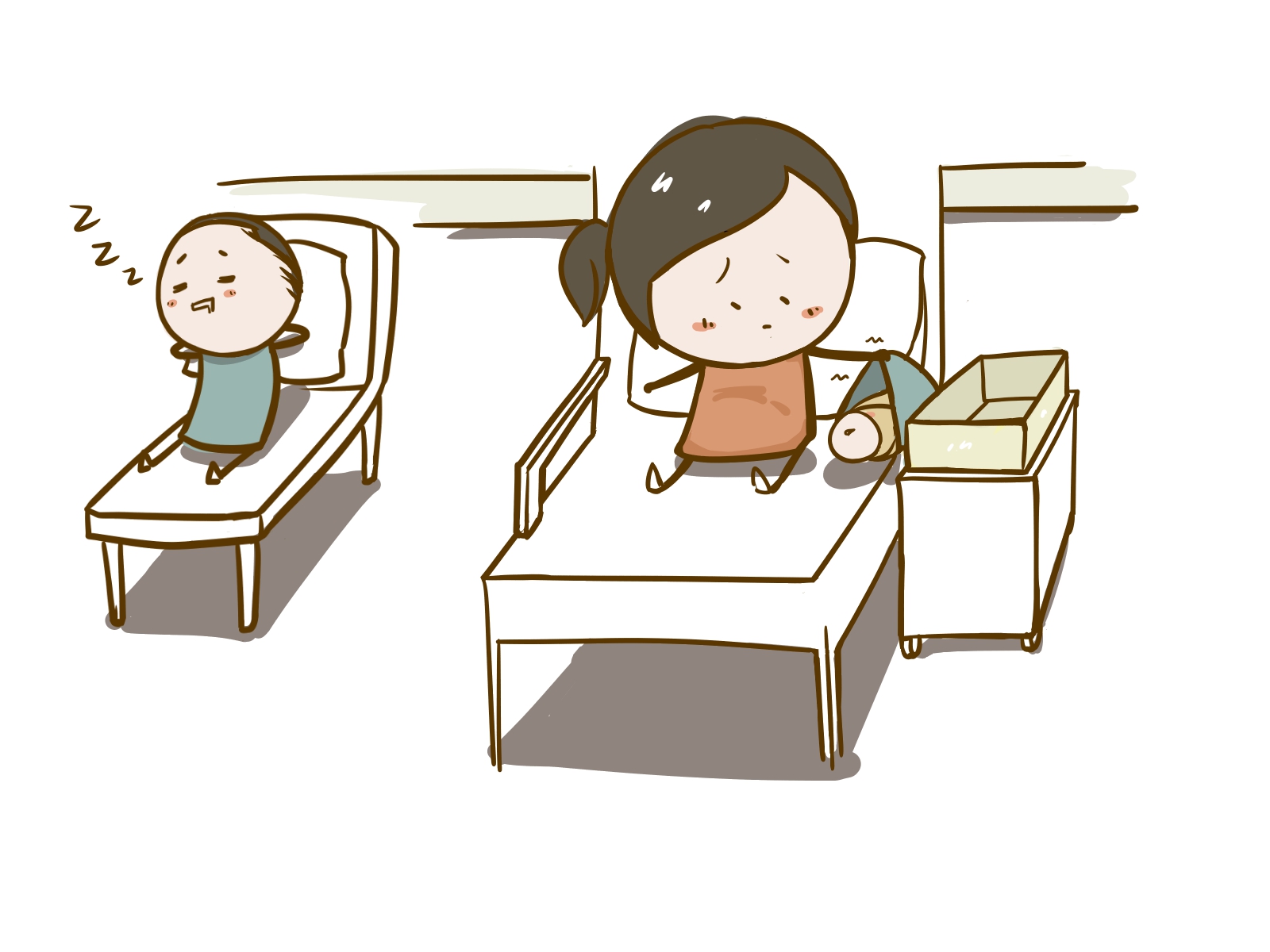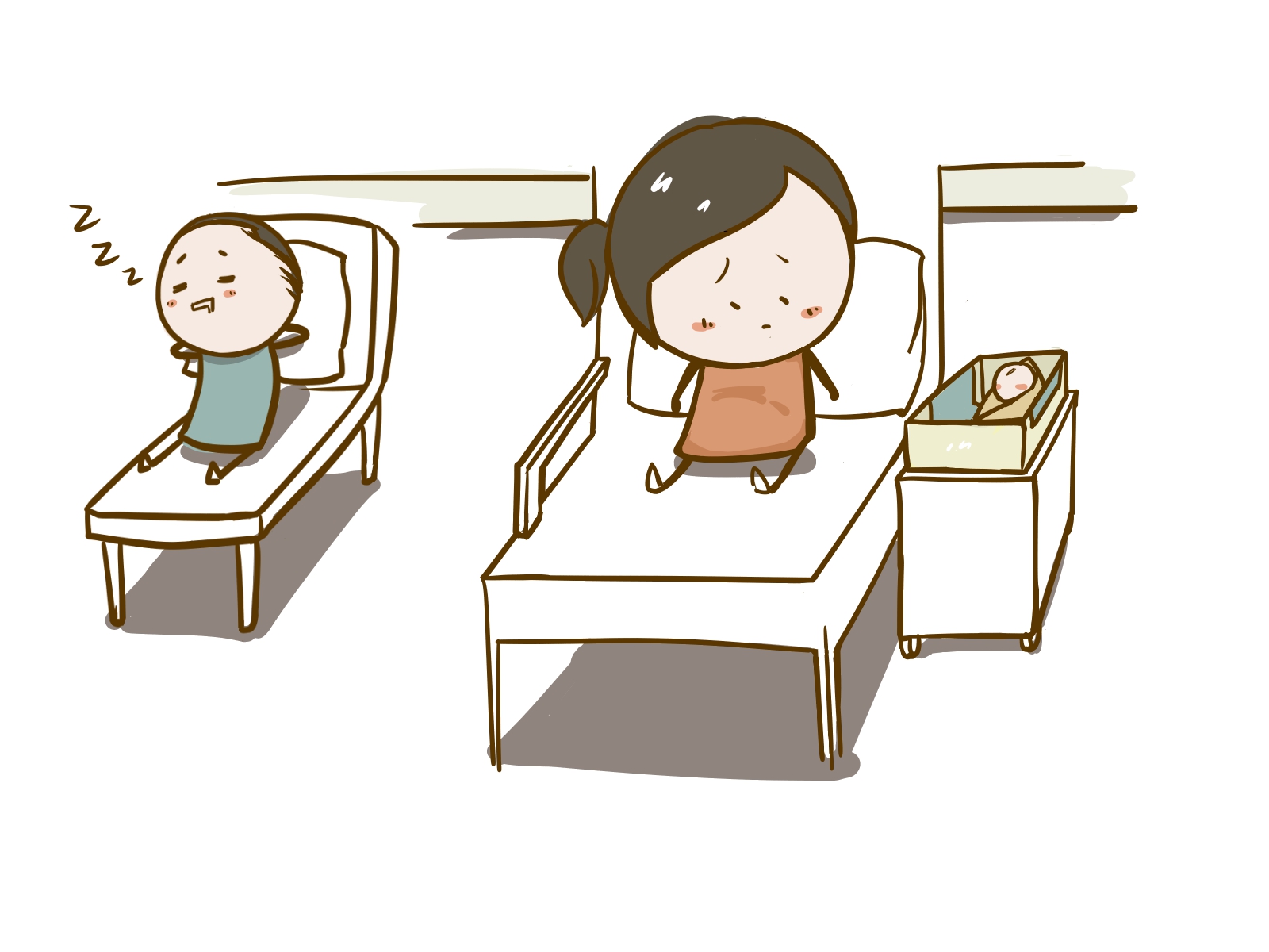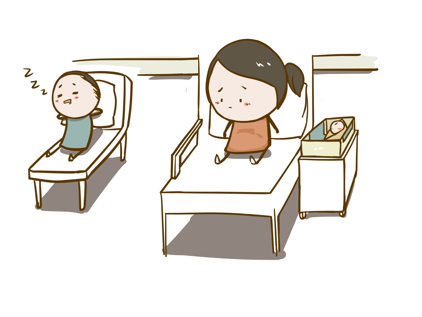 - “The chair is too far away from mom and the baby, so the nurses let me sleep in the empty second bed.”