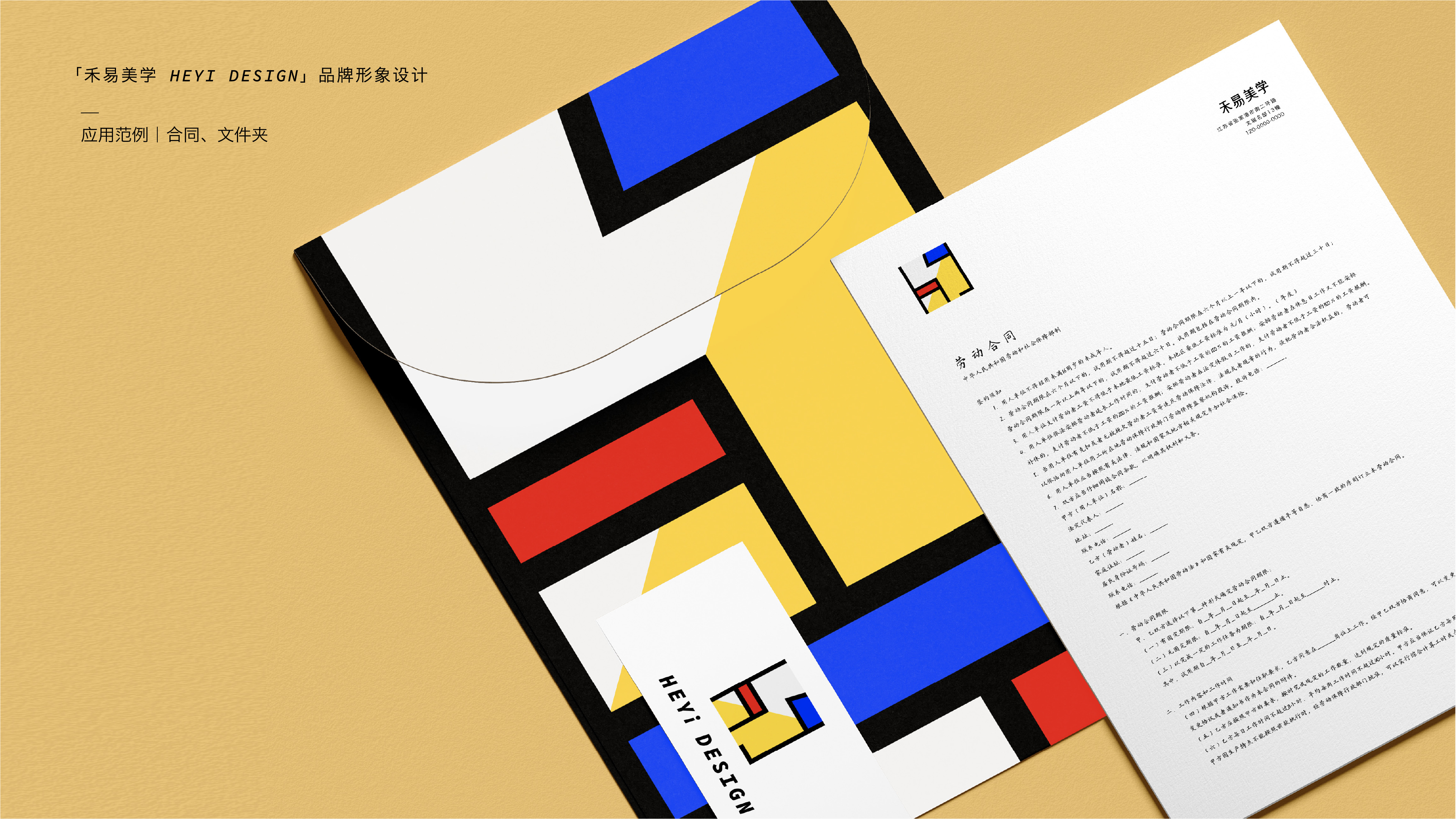 To modernize He Yi Design's brand, I drew inspiration from Piet Mondrian's art Composition with Red Blue and Yellow and used geometric shapes to create a graphic logo. The lowercase "h" resembles a chair, and the "y" resembles a floor lamp, reflecting the company's modern aesthetics and business category.