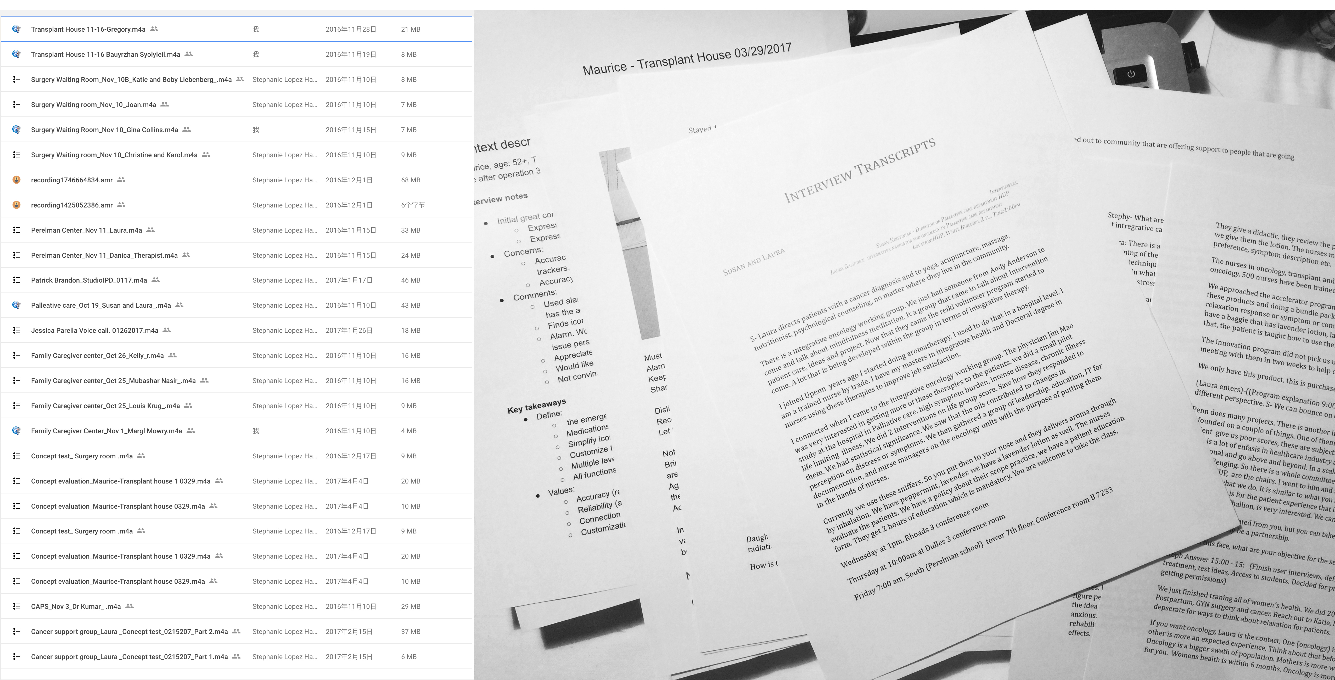 We did a substantial amount of interviews, talking with patients, family members and medical professionals at Transplant House, surgery waiting rooms and the family caregiver center in the Hospital of University of Pennsylvania and Perelman Center for Advanced Medicine.